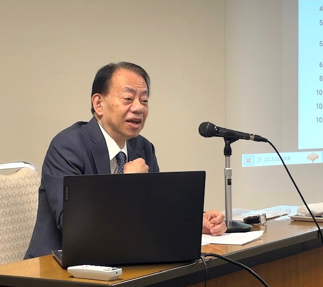 去る11月18日、国際通貨研究所理事長で前ADB(アジア開発銀行)総裁の浅川雅嗣様をお招きし、「アジア経済の見通しとリスク」と題した講演会を、青山のホテルアジア会館で開催しました。当日はこれまでと同様に会場参集とWeb聴講のハイブリッド方式とし、会場には約30名、Webからも十数名の方々が参加登録されました。